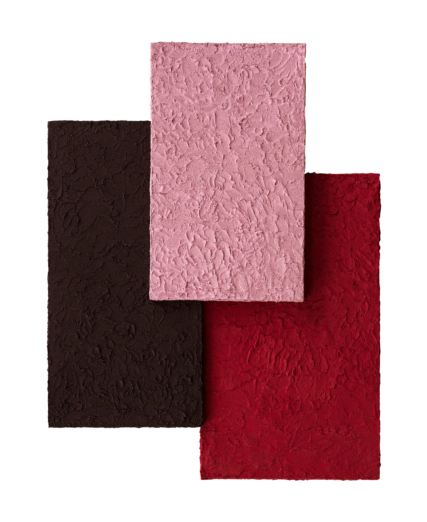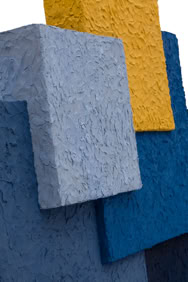 Serie di tre quadri che escono dalle forme solite (quadrato, rettangolo, etc) per comporsi in forme anomale e su livelli diversi.